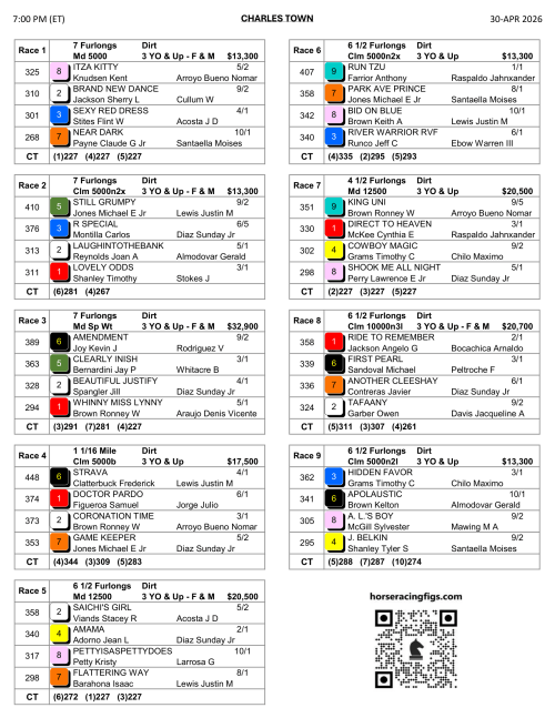 Tampa Bay, Churchill, Thistledown, Horseshoe, and Evangeline
