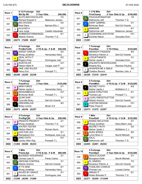 Aqueduct, Gulfstream, Oaklwan, Fair Grounds, Santa Anita, and Turfway