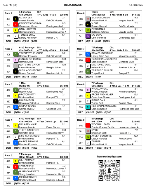 Parx Racing, Mahoning, Tampa Bay, Turf Paradise, Delta Downs, and Turfway