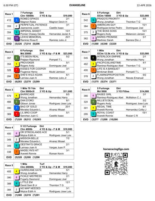Parx Racing, Thistledown, Horseshoe, Will Rogers, Turf Paradise, and Mountaineer