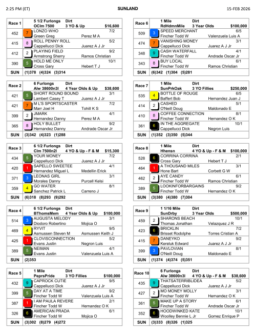 Laurel Park, Gulfstream, Tampa Bay, Aqueduct, Oaklawn, and Santa Anita
