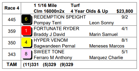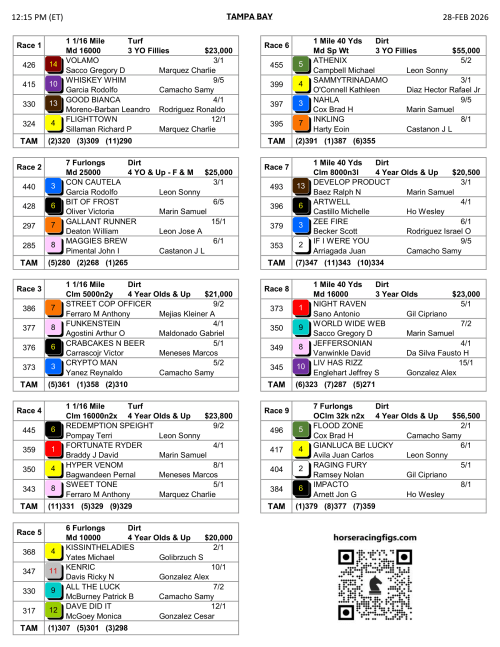 1ST RACE @ 12:15P ET