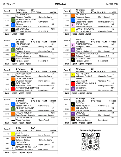 1ST RACE @ 12:27P ET