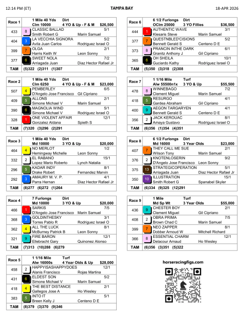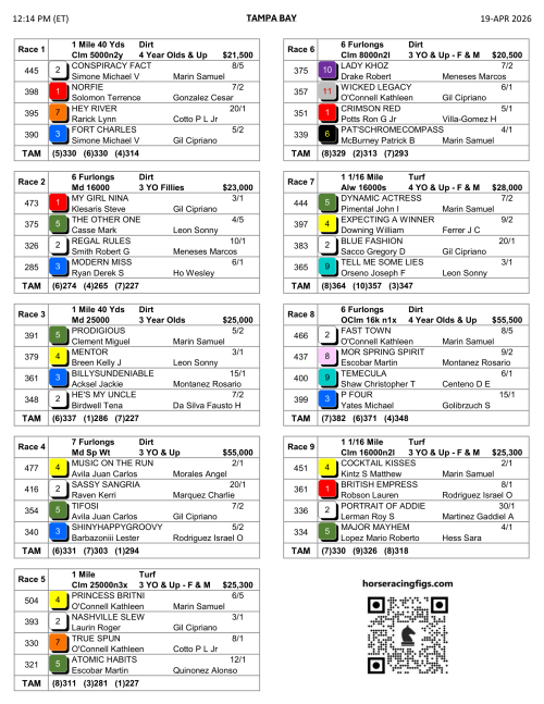 1ST RACE @ 12:14P ET