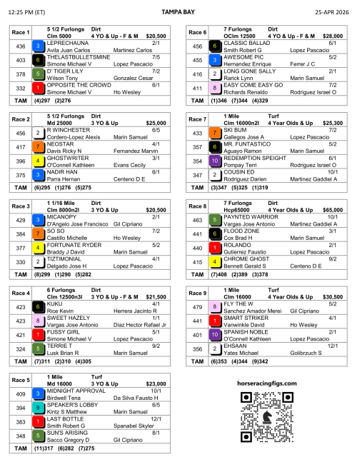 1ST RACE @ 12:25P ET