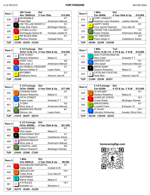 1ST RACE @ 2:00P ET