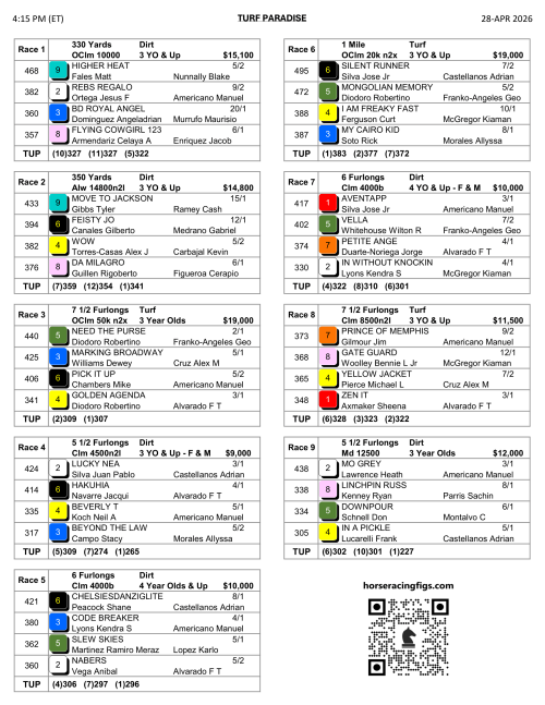 1ST RACE @ 4:15P ET