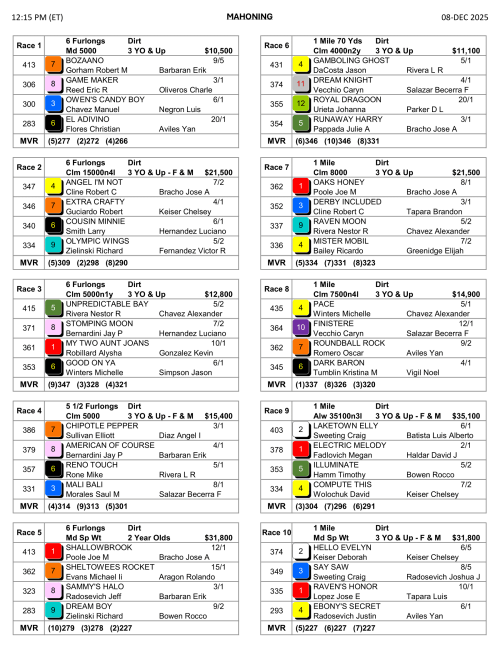 Aqueduct, Gulfstream, Churchill, Woodbine, and Del Mar